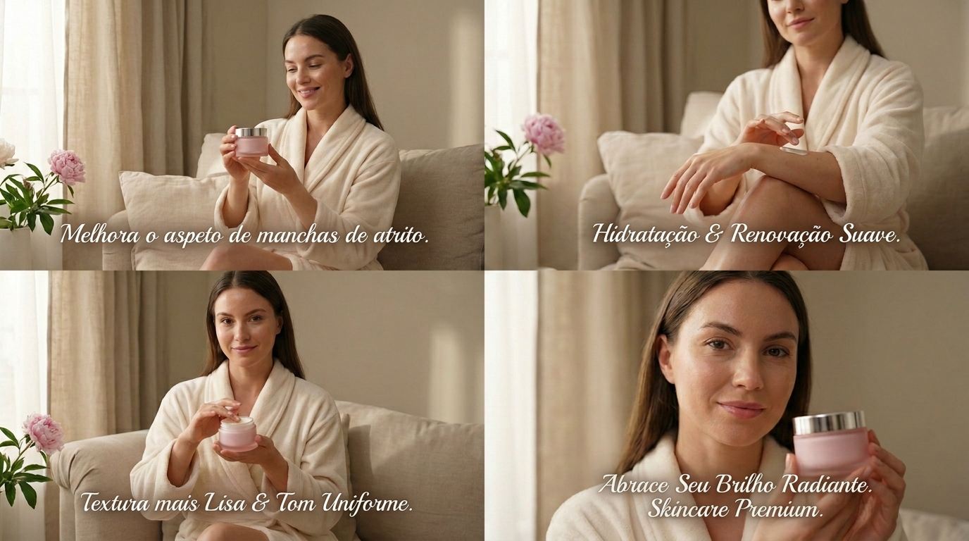 Com uso contínuo, a pele tende a ficar mais hidratada, suave e com aspecto renovado.